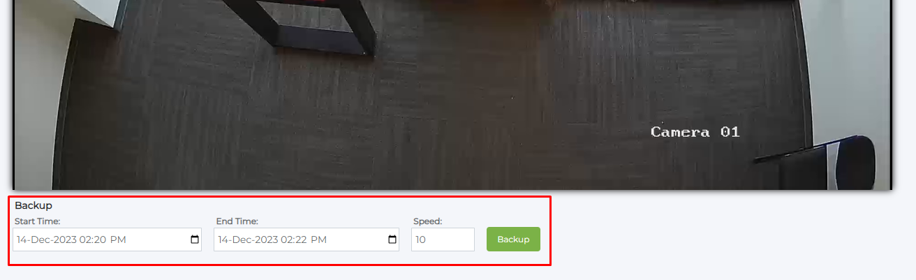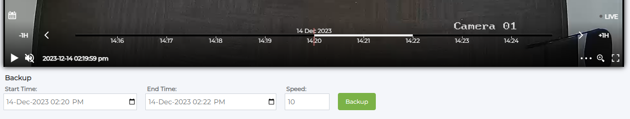 Select the start and end time of the segment you would like to back up and choose the backup speed (for example, 10 means it will back up 10x faster than real time).