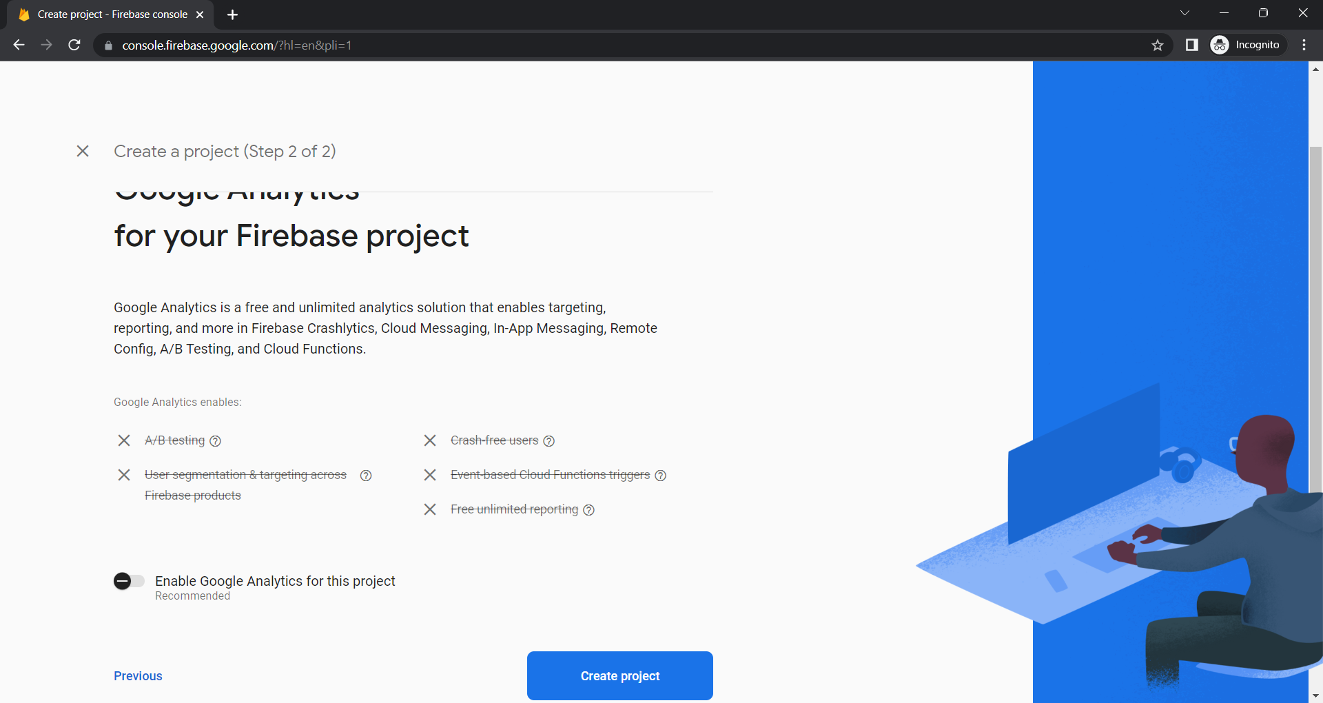 Click on Create a project