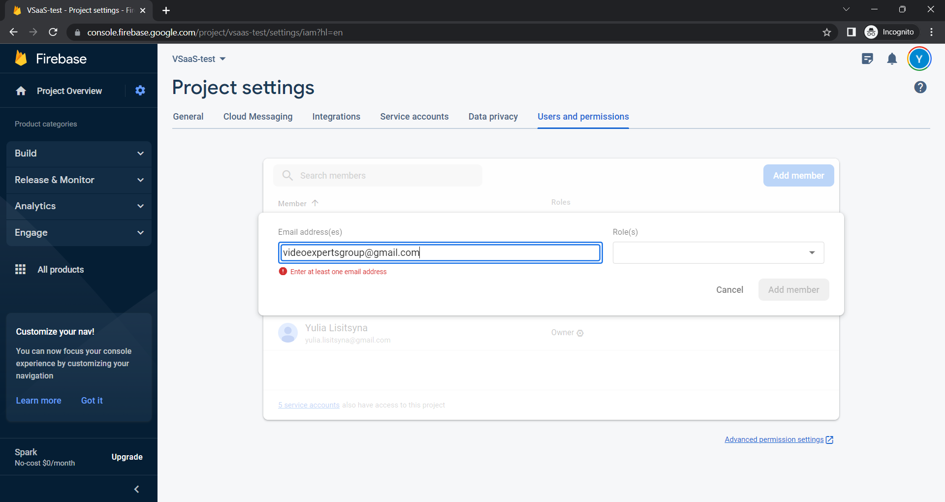 Add user videoexpertsgroup@gmail.com