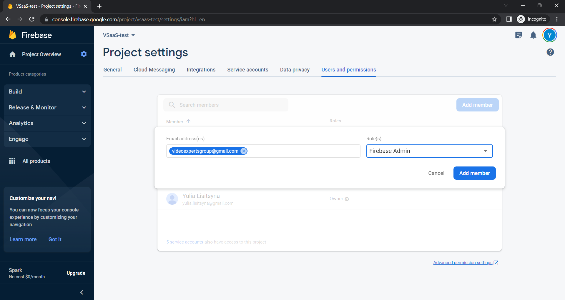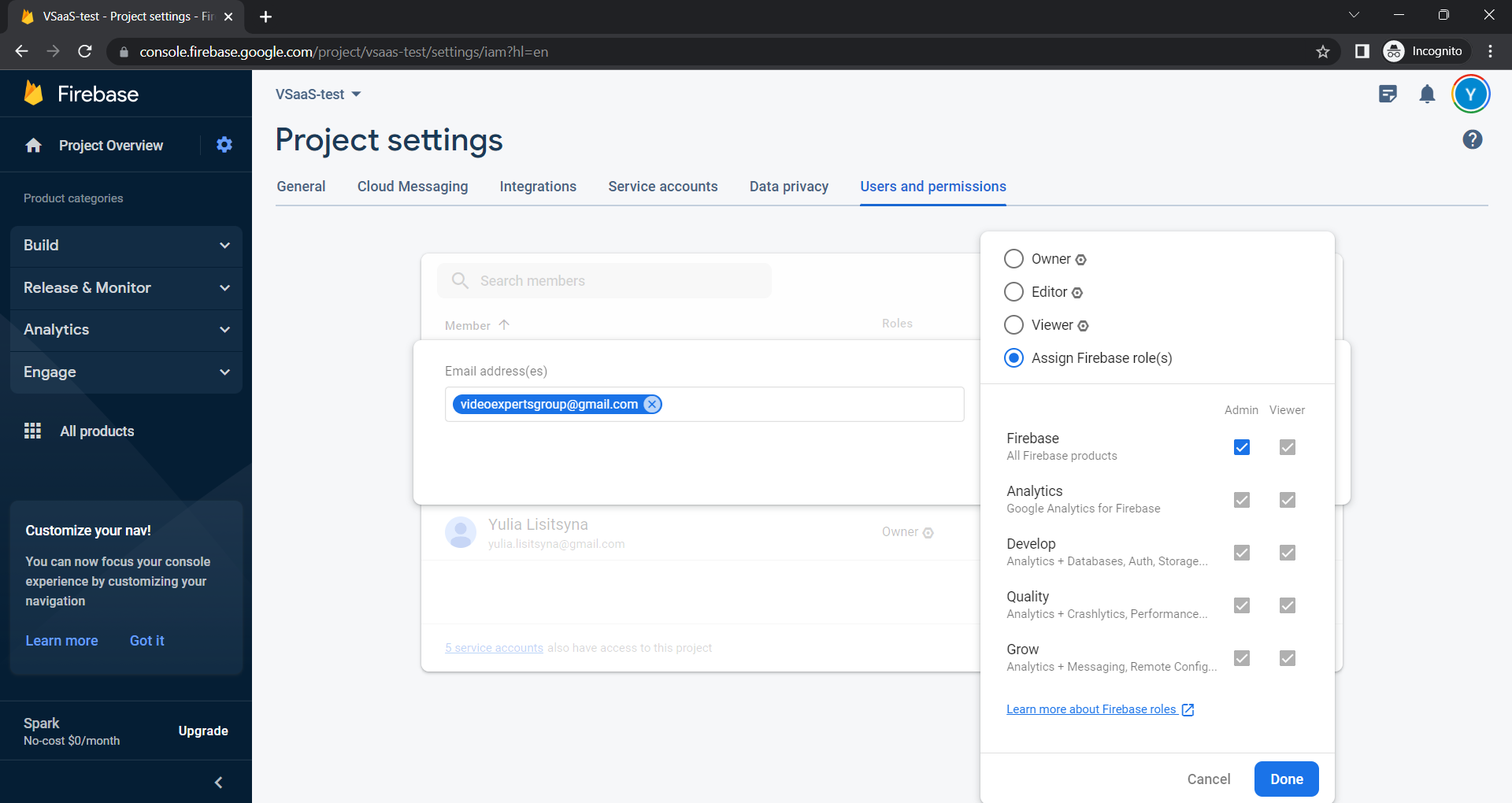 Assign role Firebase admin