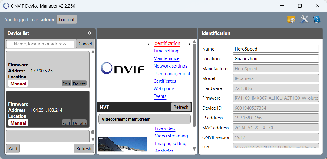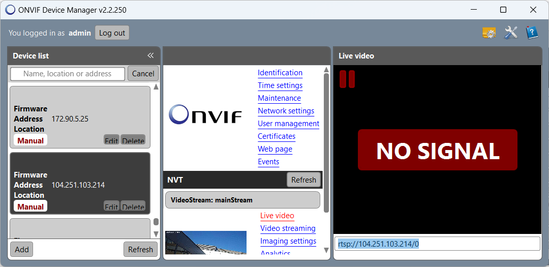 2. Test with ONVIF Device Manager