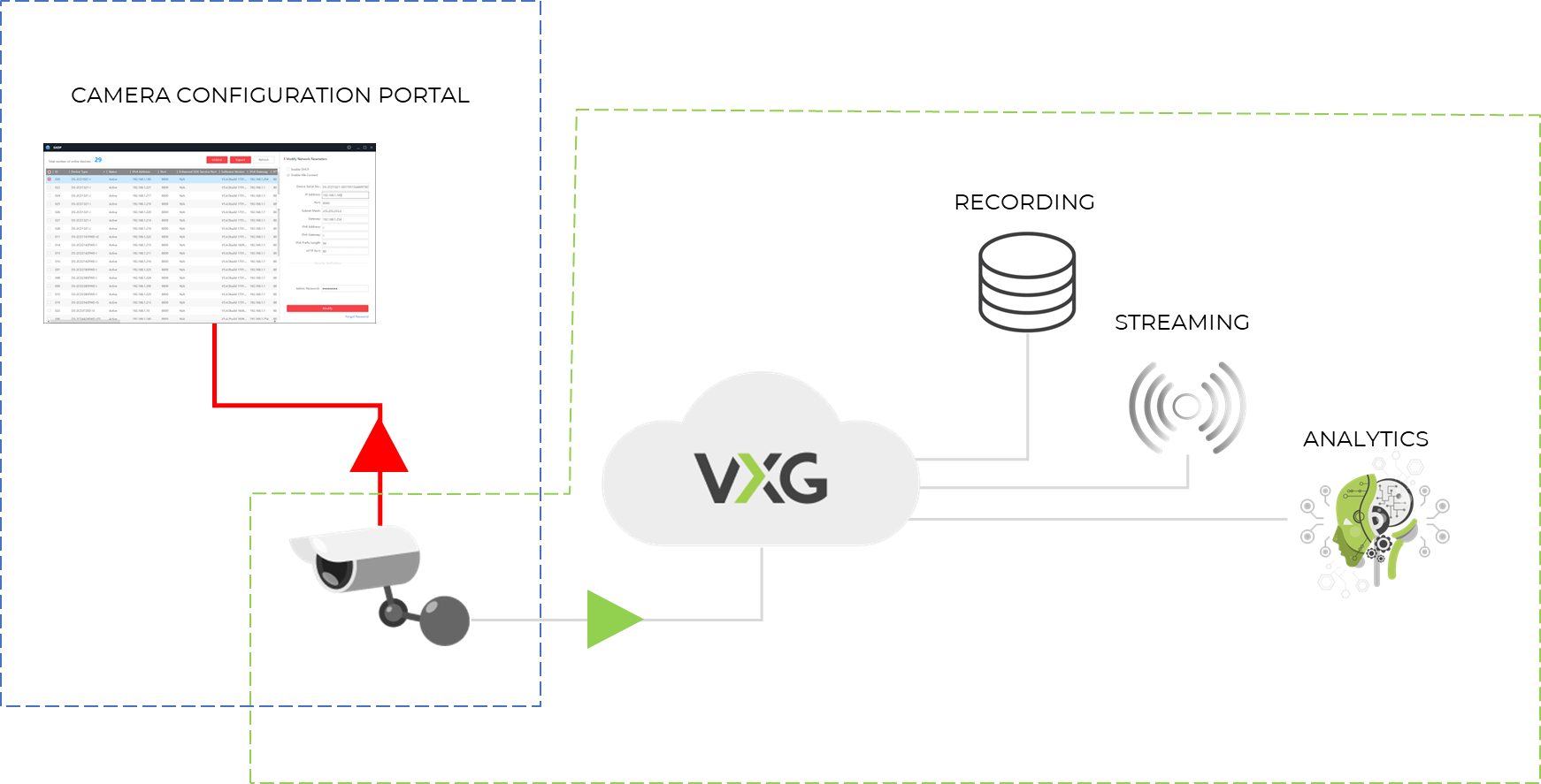 In some cases, customers will only need cloud services without VMS, for example when customers use free camera configuration tools like Hik-Connect. In this case, VXG will work in the background providing cloud services.