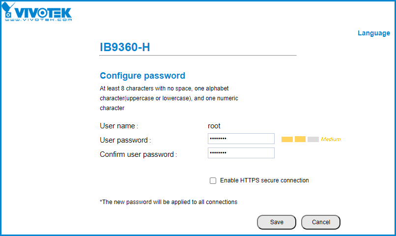 When you have opened the camera’s web interface, you need to activate it first by setting up a password: