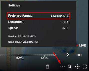 VXG Web Player SDK is a part of the VXG Cloud solution and it supports WebRTC for live video streaming, it can be selected as the preferred video format in the settings: